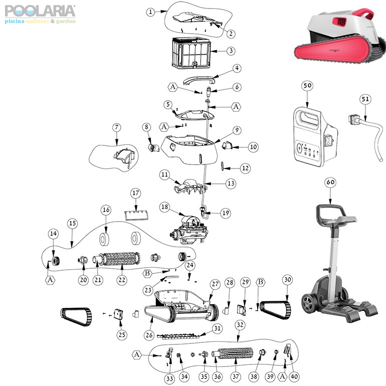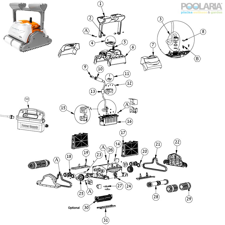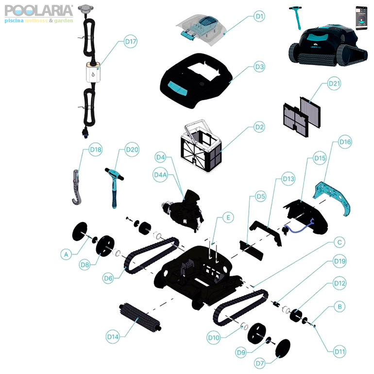 Adquiere el repuesto necesario para recuperar el mejor rendimiento de tu robot limpiafondos Dolphin M550 y prolongar su vida útil. Si necesitas algún repuesto del despiece no disponible para la compra online, contacta con nosotros y procederemos a darlo de alta.