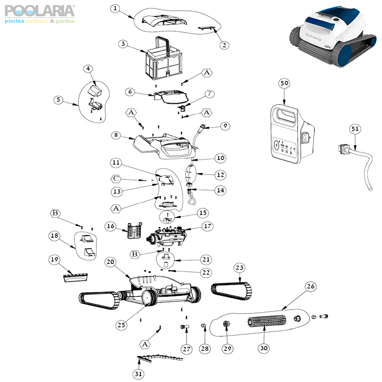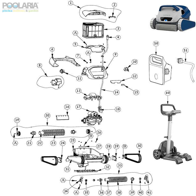 Encuentra repuestos originales del limpiafondos Dolphin Blue Maxi 50i para la compra online con total comodidad y rapidez. Recibe en tu domicilio los elementos necesarios para que puedas volver a disfrutar del máximo rendimiento de tu robot. Si necesitas algún recambio del despiece no disponible para la compra, contacta con nosotros y procederemos a darlo de alta.
