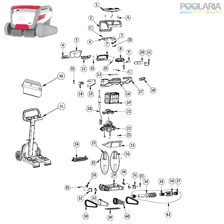 Localiza y compra online cualquier repuesto para tu robot limpiafondos Dolphin Active X4. Renueva los componentes desgastados y recupera el rendimiento original de tu equipo. Si necesitas algún recambio del despiece no disponible en el listado, contacta con nosotros y procederemos a darlo de alta.