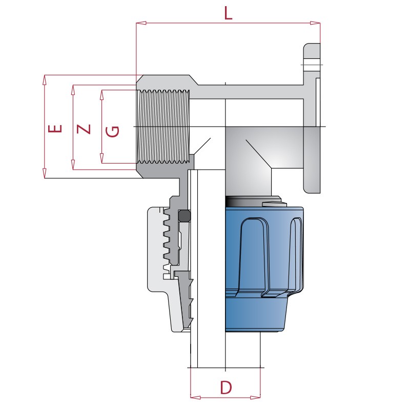 - Codo con placa mural de la Serie Performance de Cepex, fabricado en PP para tubería de PE.