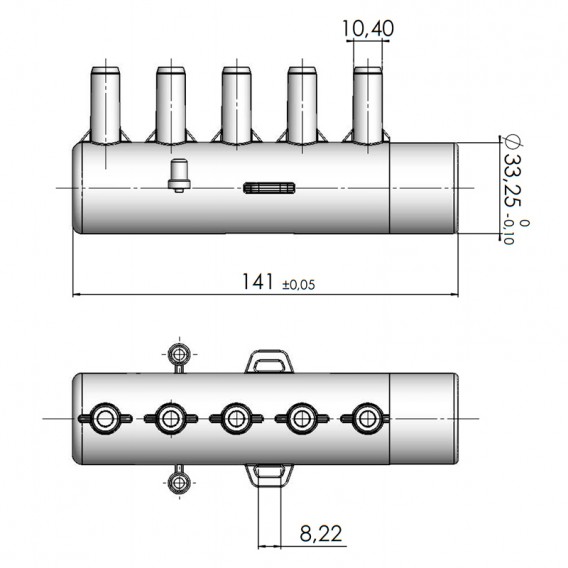 Salidas adaptadas para embridar mangueras flexibles de 10 mm de diámetro interior, permitiendo una distribución precisa del aire hacia los jets.