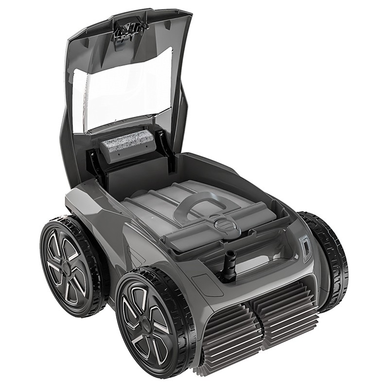 - Evacuación rápida del agua con sistema Lift System. Gracias a la tecnología patentada Lift System, el robot se posiciona en la línea de flotación y expulsa agua para que sea más ligero al sacarlo de la piscina (20% menos de esfuerzo para retirar el limpiafondos del agua).