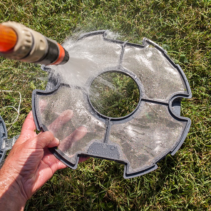 - Diseñado para la limpieza del fondo de piscinas elevadas de hasta 10 x 5 metros (50 m²), con fondo plano (máxima inclinación del 15%).