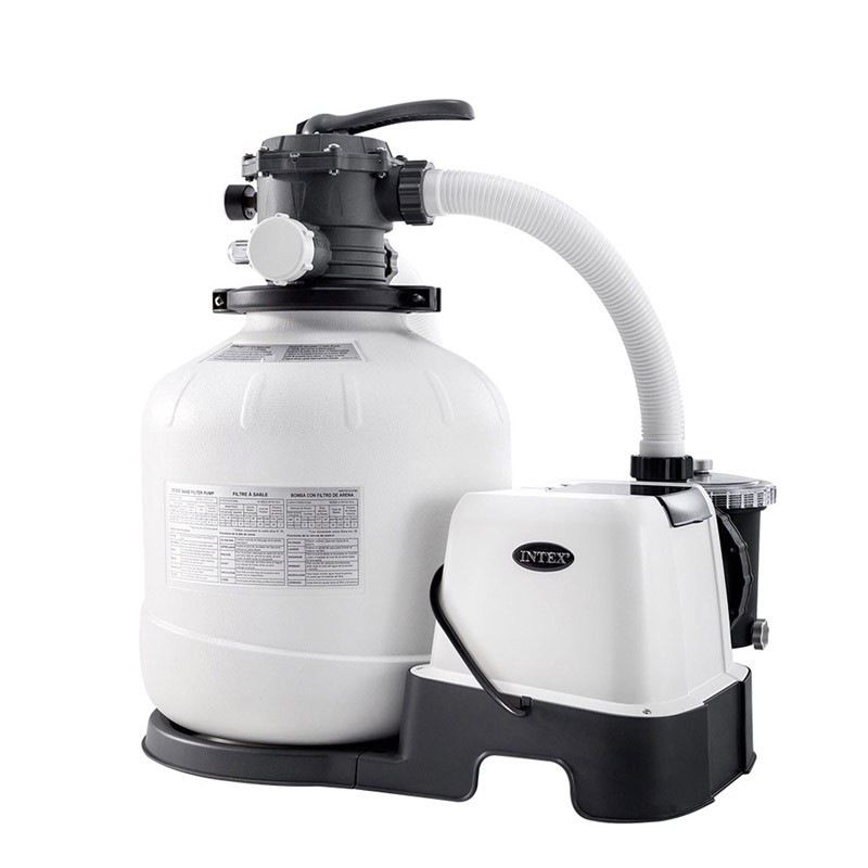 - Depuradora de arena de 10.500 l/h con filtro y bomba (tiempo de depuración: 5-6 horas). Nuevo modelo con tecnología Intex Hydro Aeration para la oxigenación del agua.
