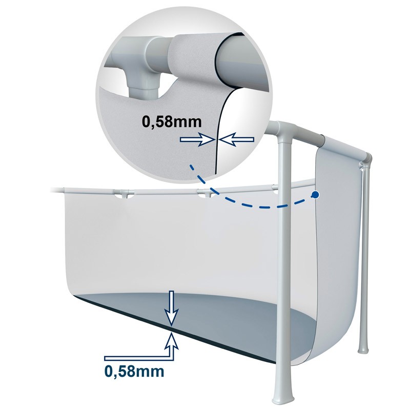 - Lona de 0,58 mm de grosor fabricada con tecnología Super-Tough con 3 capas laminadas de material de primera calidad para mayor resistencia y durabilidad.