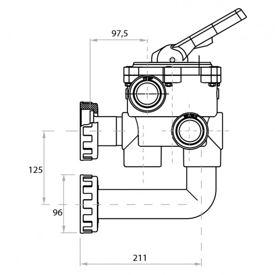 Válvula selectora 1½" lateral con enlaces a filtro